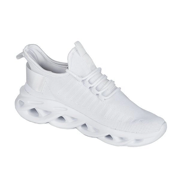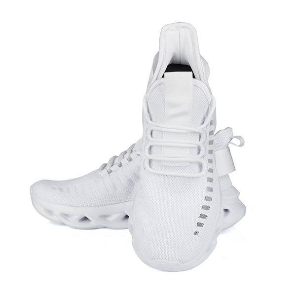 Sportowe buty podwyższające BARTOLOMEO wykonane z materiału w kolorze białym, umieszczone na białej podeszwie.